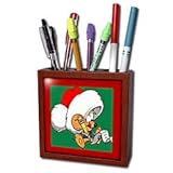 Sandy Mertens Christmas Designs - Christmas Mouse With List - Tile Pen Holders-5 inch tile pen holder (Office Product)